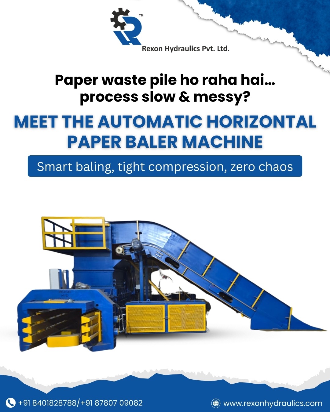 Ideal for baling OCC cardboard, paper waste, plastics, PET bottles, textiles, and foam, this machine provides a versatile solution for waste management. As a trusted Automatic Horizontal Paper Baler Machine Distributor in India, Rexon Hydraulics Pvt. Ltd. ensures reliable performance, robust engineering, and consistent supply for recycling operations.