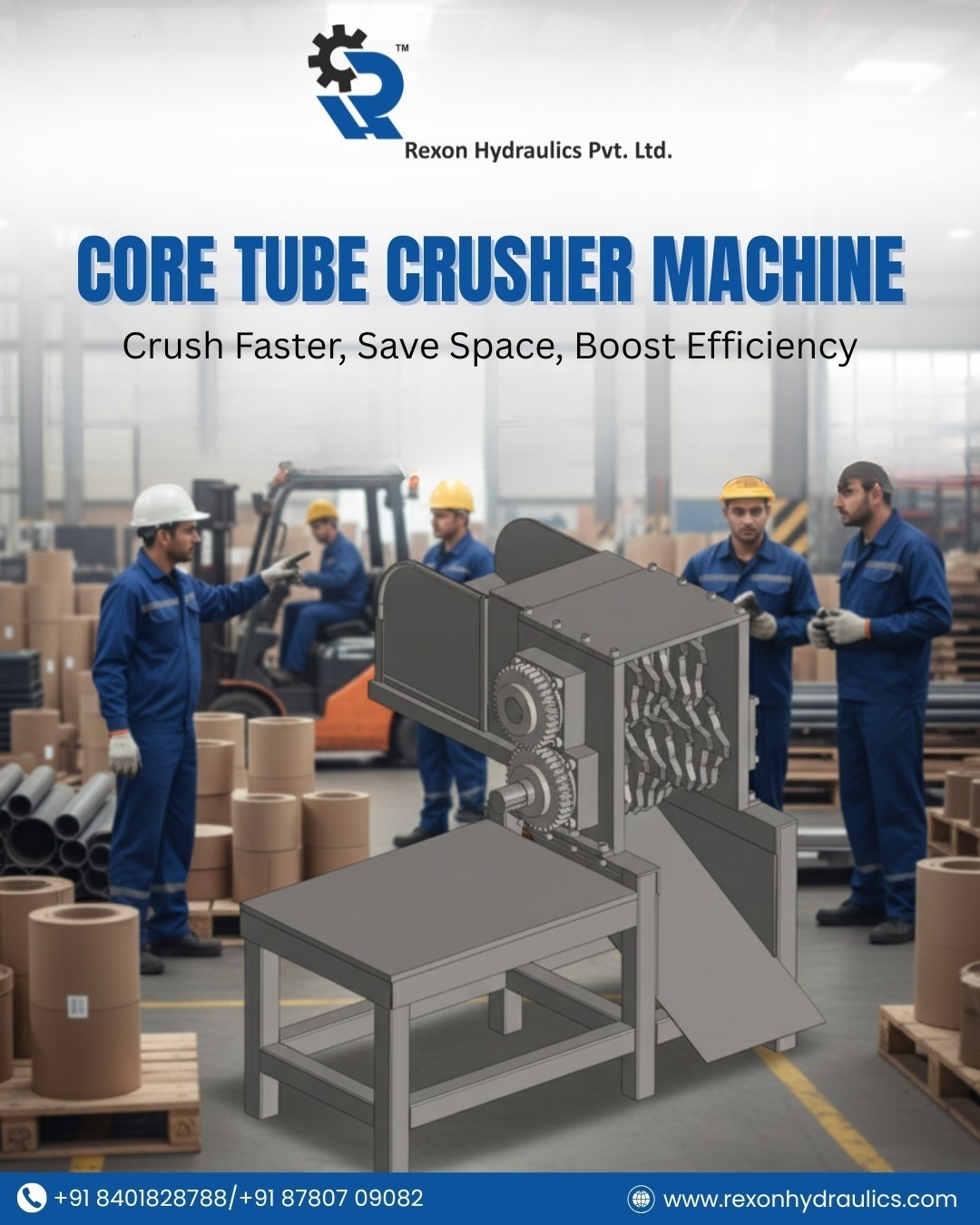 Rexon Hydraulics Pvt. Ltd. offers the Best Core Tube Crusher Machine in Ahmedabad, designed for efficient crushing of industrial core materials like paper, cardboard, and plastic tubes. With a 20 HP motor and high-torque planetary gearbox, it delivers smooth, reliable, and long-lasting performance for recycling and waste management.
