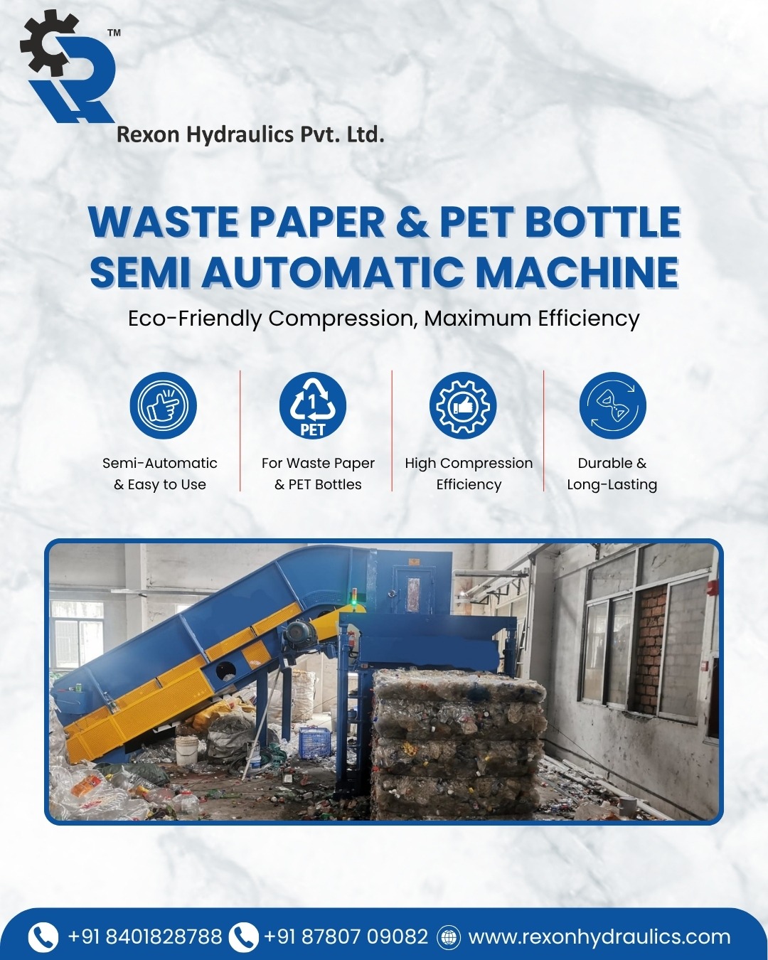 As a trusted manufacturer in India, Rexon Hydraulics Pvt. Ltd. is known for innovation, quality, and customer satisfaction. Choose our Waste Paper & PET Bottle Semi Automatic Machine to streamline recycling and support a cleaner, greener tomorrow.
