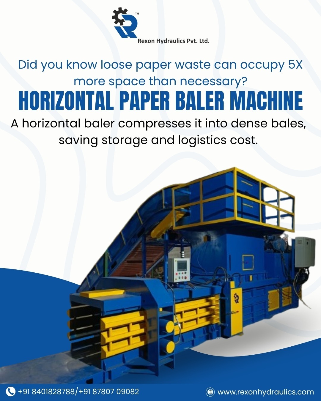 Recognized as a leading Horizontal Paper Baler Machine Supplier in Gujarat, Rexon Hydraulics Pvt. Ltd. delivers reliable machines that reduce storage space, lower transportation costs, and improve workplace cleanliness.