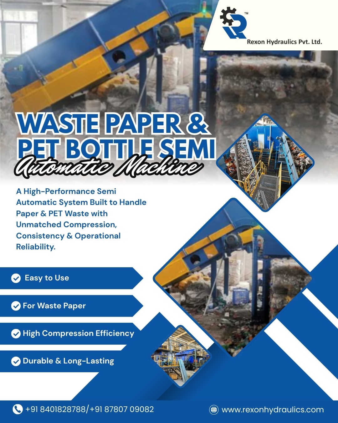 #RexonHydraulics #WasteManagementMachine #PETBottleMachine #PaperWasteMachine #RecyclingMachineManufacturer #SemiAutomaticMachineIndia